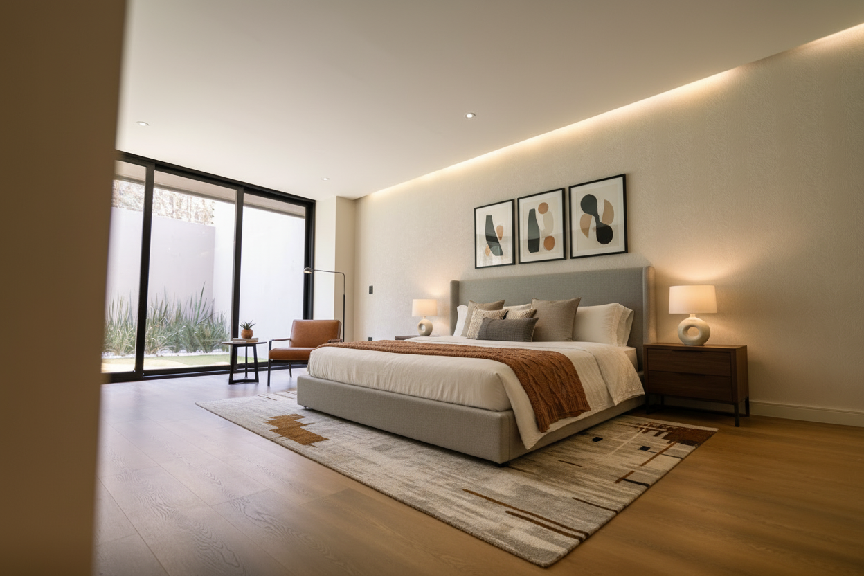 - 1 recámara principal con baño completo, vestidor, bañera y patio